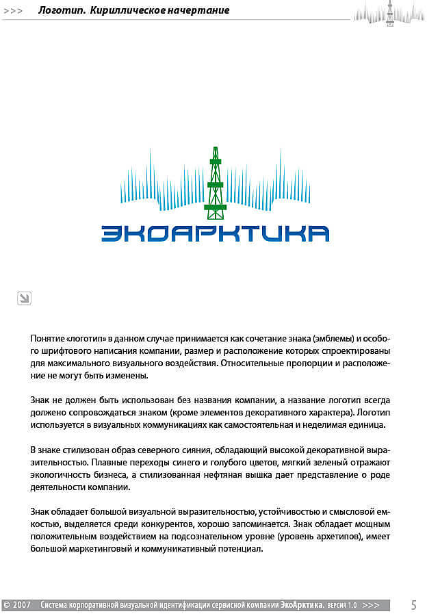 Идеологическое наполнение бренда в руководстве по стилю связано с позитивным запоминающимся образом, который отражает надежность, солидность и динамизм в развитии такой серьезной организации