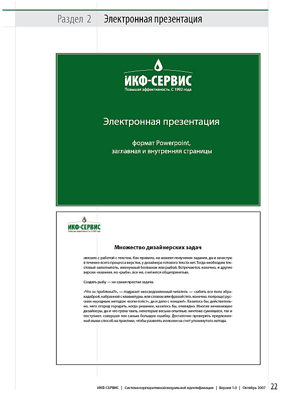 * Руководство по фирменному стилю оформляется в сброшюрованном на пластиковую пружину виде и сопровождается компакт-диском, на котором издание представлено в виде электронной презентации, а каждая константа фирменного стиля – электронным оригинал-макетом, оптимизированным для последующего воспроизведения и тиражирования.