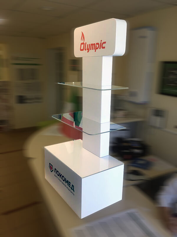 Дизайн, производство и поставка фирменных торговых стоек.