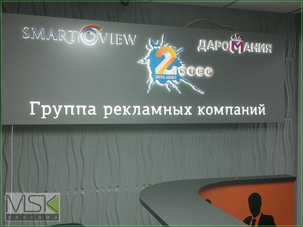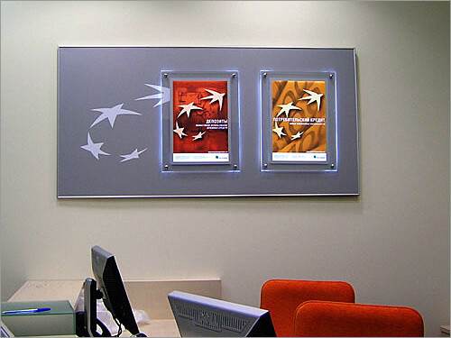 Возможности нашего производства не ограничиваются только рекламными вывесками, мы выполним полный комплекс работ по оформлению Вашего офиса, торгового зала, филиала банка, ресепшн по оригинальному дизайн-проекту. Работаем в Москве и регионах РФ.
