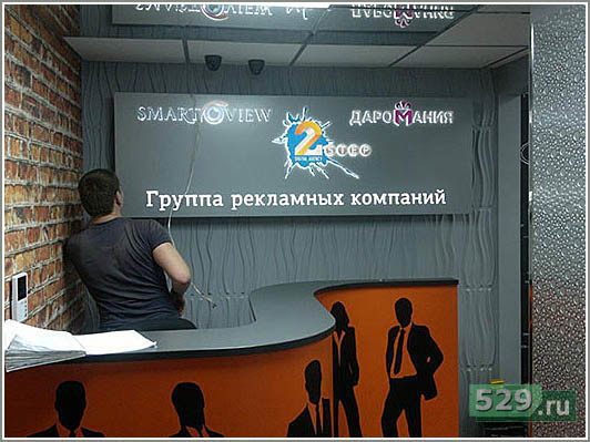 Комплексное оформление зоны ресепшн с вашим логотипом. Дизайн и изготовление по индивидуальным размерам
