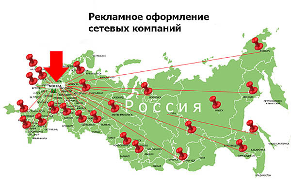Внутреннее и наружное рекламно- маркетинговое оформление сети офисов, магазинов, филиалов в Москве и регионах