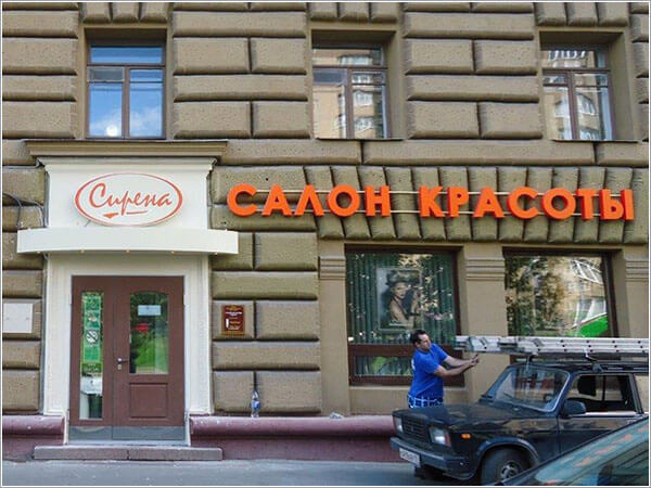 При формировании облика входной группы вывески являются самым распространенным элементом наружной рекламы.