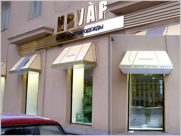Входная группа содержит, как правило, несколько элементов рекламного оформления, формирующих внешний вид вашей торговой точки или компании.