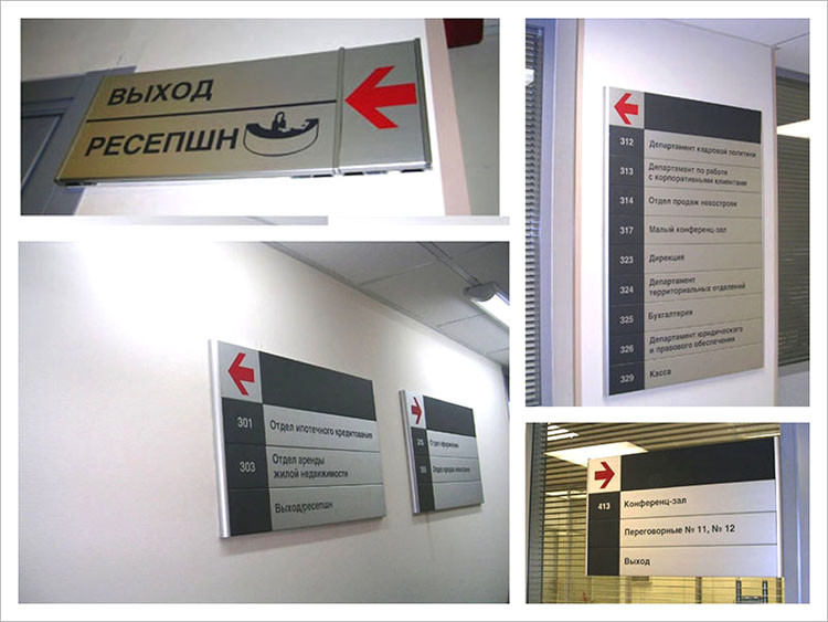Разработка, изготовление и монтаж систем визуальной навигации в помещениях и на открытых пространствах..