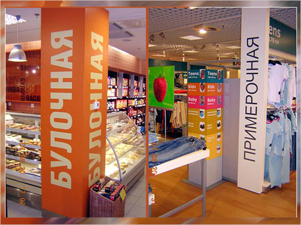 Внутреннее и наружное рекламно- маркетинговое оформление сетей офисов, магазинов, отделений в Москве и регионах.